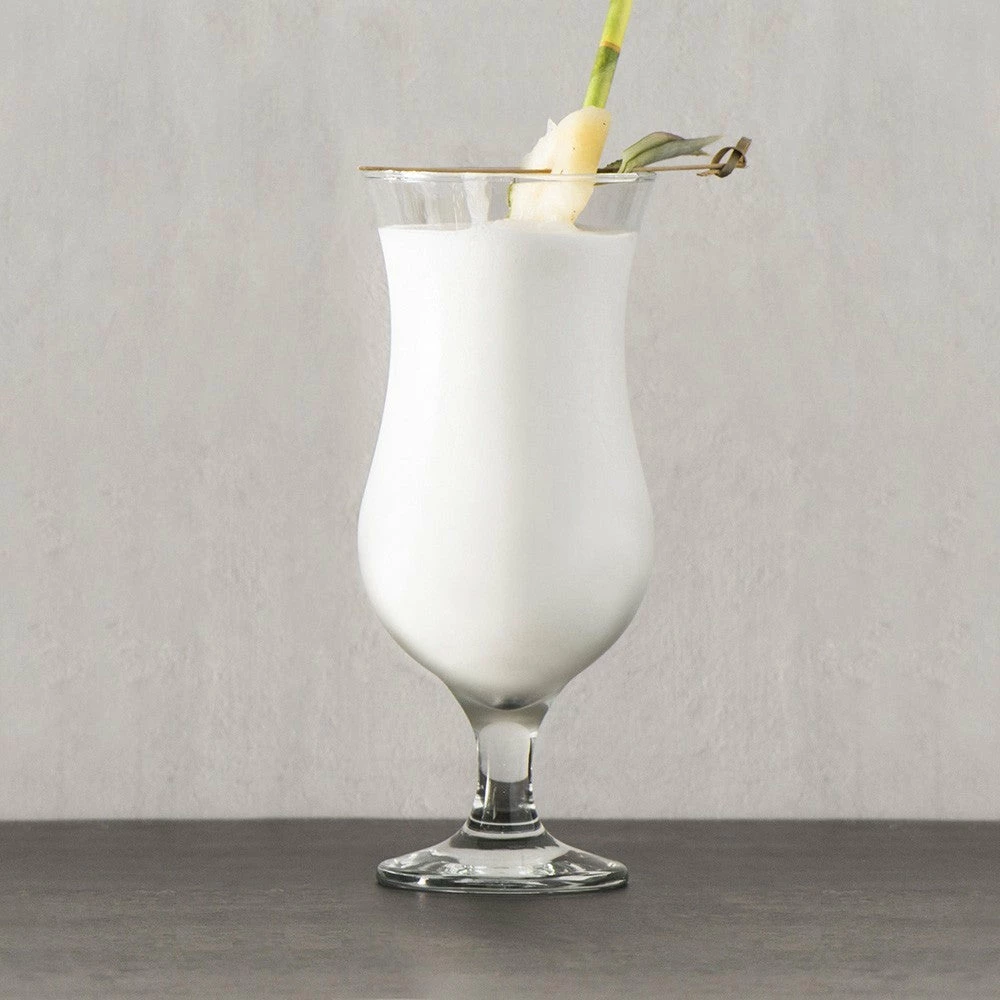 The curved and unique shape of the hurricane makes it the perfect glass for fun cocktail parties. Its tall and wide tulip shape makes it great for large frozen drinks as well as delicious mixed drinks. The beautiful quality handmade glass allows for all to see the variety of bright colors each drink may have. Its beachy aesthetic will transport you to a tropical oasis, making the glass one to be remembered for future parties and gatherings.